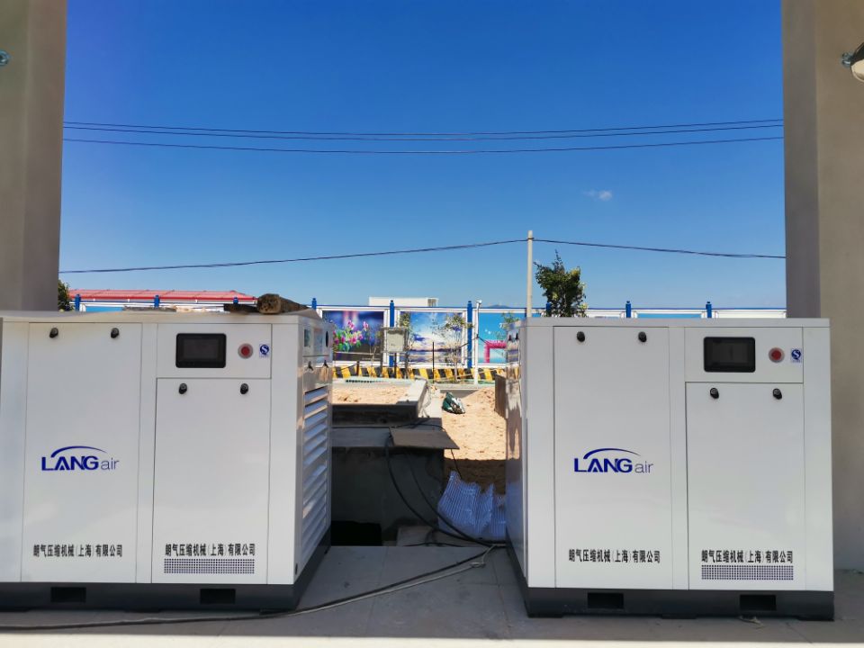 (2)打开机器门锁,观察空压机油位,此时油位应在油位刻度绿区,否则需补充朗气螺杆机专用油,到正常油位。