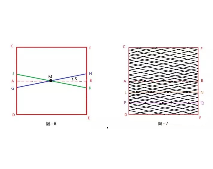 在任意的下一个瞬间,如图-7LN线,或PQ线所代表的瞬间,可以看到,剪切点的数量基本相当。这一点非常重要,它表示在破碎辊的旋转过程中,任何瞬间所破碎大豆的数量、所需要的驱动力的大小是近乎相同的。