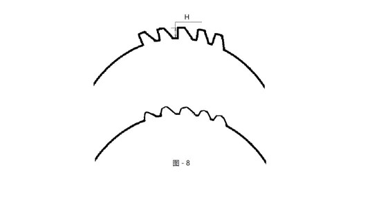 因为对于参数指标不同来源的大豆,或调质时温度、水分的变化、大豆中杂质的性质和数量都可能对破碎辊的使用寿命产生影响,不同的操作工和维修工对齿形磨损的判断,也不相同。但是,如果依据图-8中齿形的高度H值为准,用游标卡尺、专用工具或模板来测量磨损后齿形的高度差,再结合大家的经验,确定一个合理的数值,可以使新、老员工都能对破碎辊更换周期做出合理判断,做到更加简洁、合理、有效。