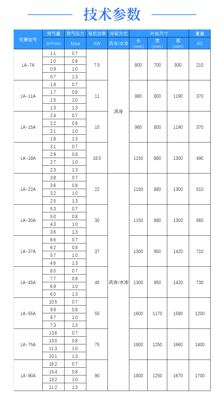 排气压力:0.7~1.25MPa