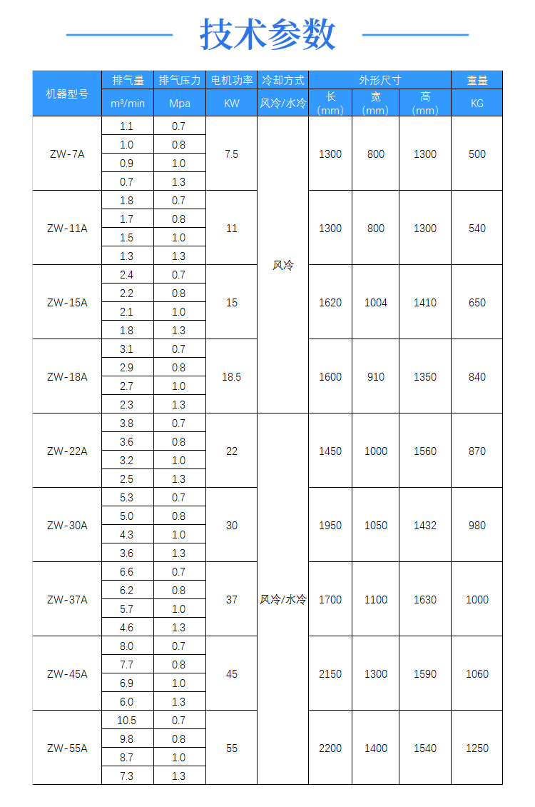 1、真正无油无水的压缩空气,全无油的整机结构。