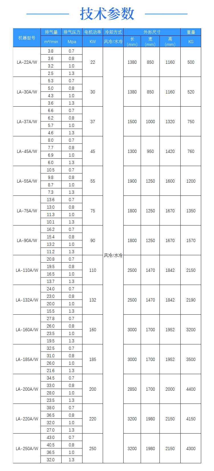 排气压力:0.7~1.25MPa<br>